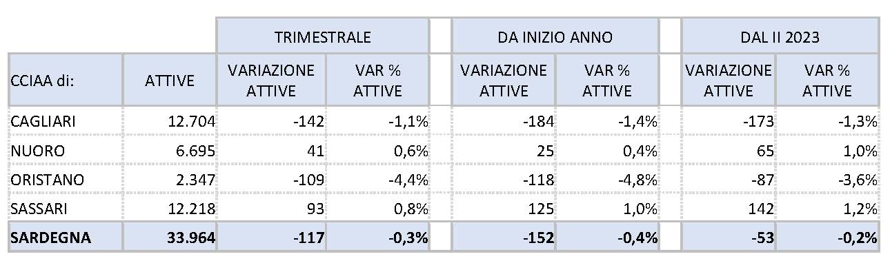 4. Sassari: Emerge come l'area più dinamica, con un aumento dell'1,2% (+142 imprese) rispetto al secondo trimestre 2023 e dell'1% dall'inizio dell'anno.