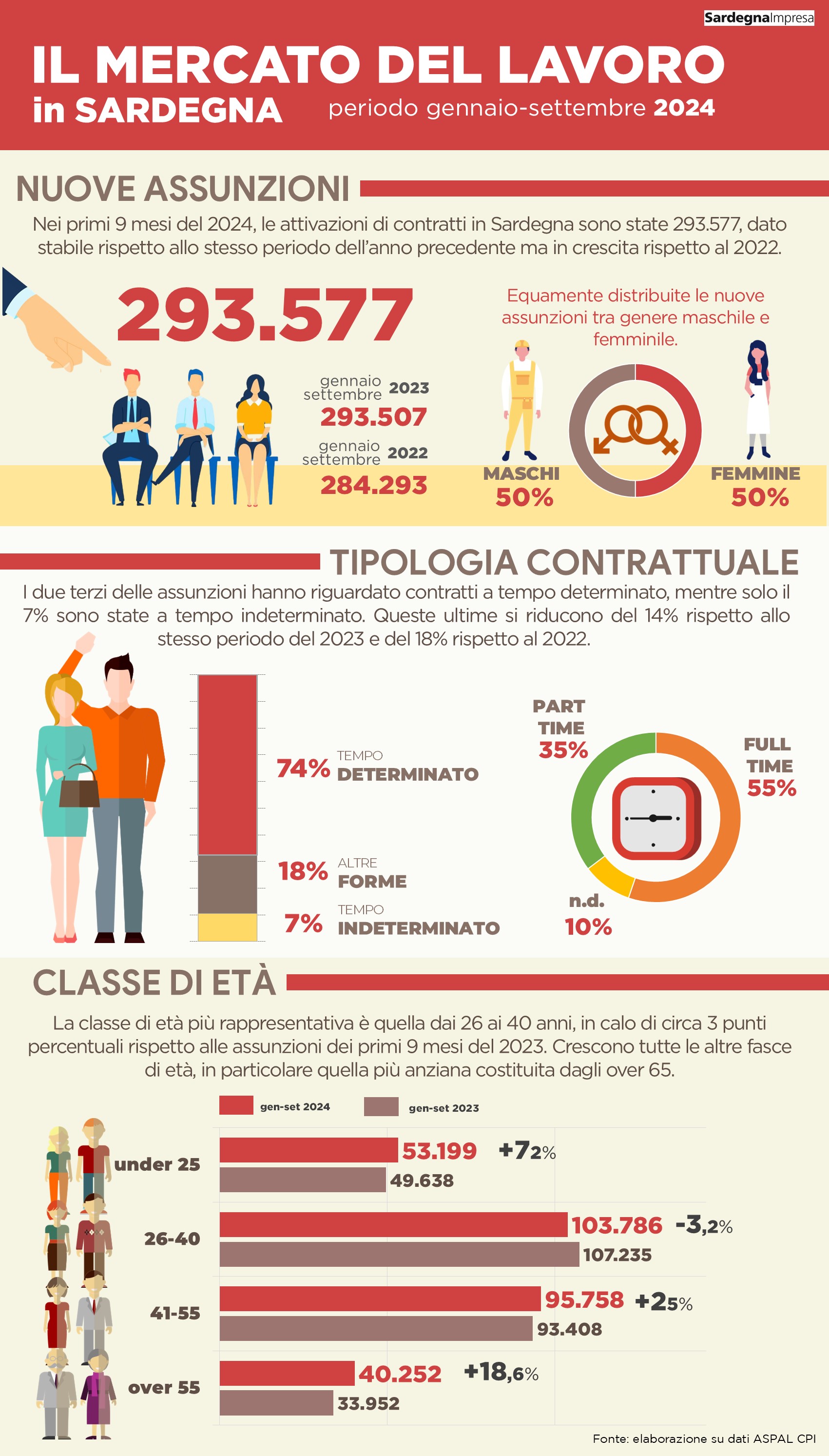L’infografica è bastata dall’elaborazione di dati di fonte ASPAL CPI, periodo gennaio-settembre 2024